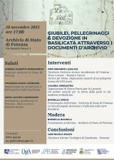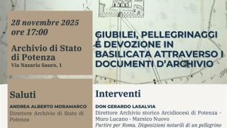 Si segnala questo interessante convegno presso l’Archivio di Stato di Potenza, in via Nazario Sauro, dal titolo “Giubilei, pellegrinaggi e devozione in Basilicata attraverso documenti d’archivio” che si terrà venerdì…