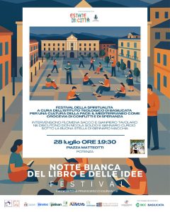Si invita a questo evento della Notte Bianca del Libro e delle Idee, organizzato all'Istituto Teologico di Basilicata Potenza (ITB) insieme all'associazione "Letti di sera": che si terranno al centro storico di Potenza in piazza Matteotti (di fronte al Comune e al Tempietto di san Gerardo in piazza Sedile): - lunedì…