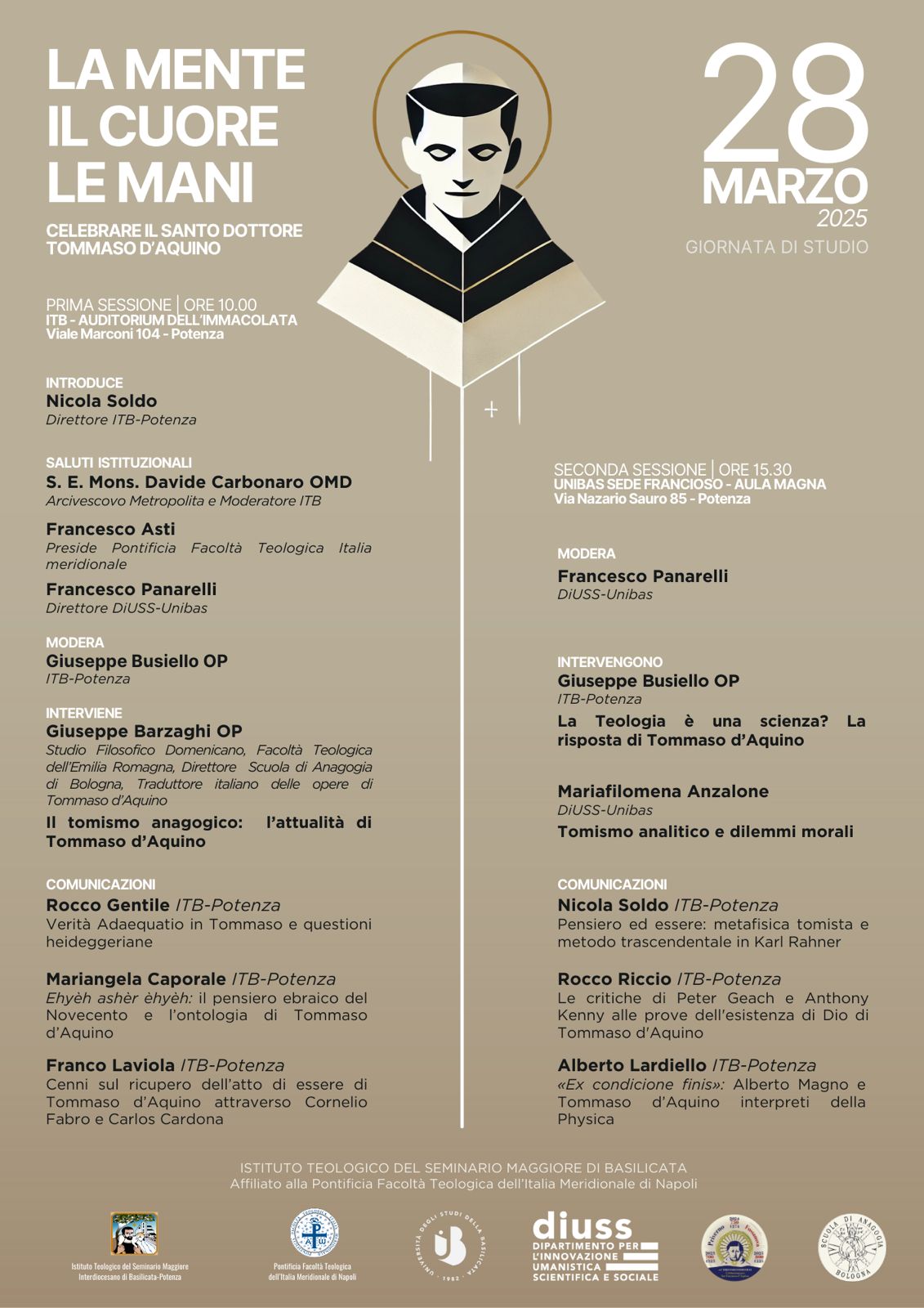 con immenso piacere presentiamo la giornata di studio su san Tommaso d’Aquino che il settore filosofico del nostro Istituto ha curato e promosso che si terrà venerdì 28 marzo 2025 presso le sedi dell’ITB (mattina) e dell’Unibas (pomeriggio) a Potenza.